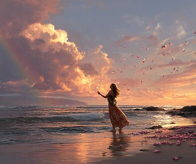 神々の通り道とも言われ、神聖な存在とのつながりを象徴。特に神話では虹は神からの祝福を表すことも。